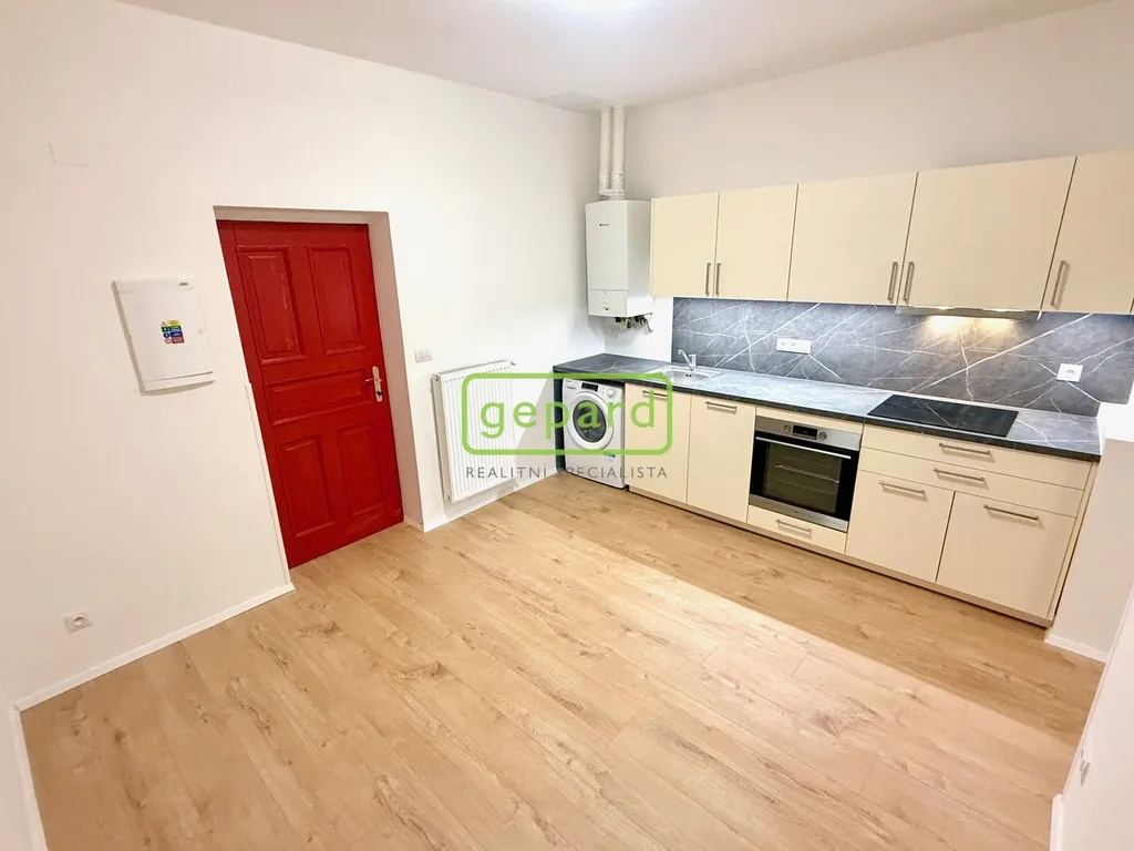 Byt prošel kompletní rekonstrukcí – najdete zde nové podlahy, moderní kuchyňskou linku vybavenou vestavěnými spotřebiči (varná deska, pečicí trouba, digestoř, myčka, pračka) a koupelnu s kvalitním zázemím. Vytápění a ohřev vody zajišťuje plynový kondenzační kotel. Díky vysokým stropům působí interiér vzdušně a komfortně.