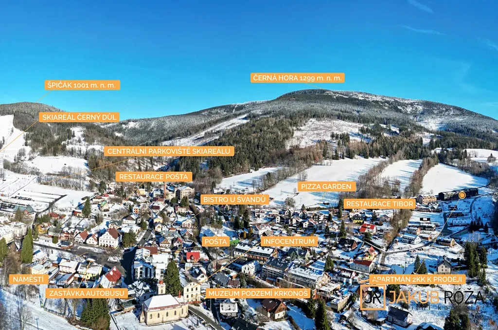 Exkluzivně Vám nabízím PRODEJ krásného a útulného apartmánu v nedávno postaveném apartmánovém domě v Černém Dole, uprostřed největšího Českého lyžařského areálu SkiResort ČERNÁ HORA – PEC.
