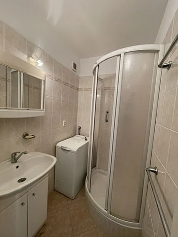 Byt disponuje klasickým a velmi praktickým uspořádáním, vstupní předsíň, vlevo samostatné WC, samostatná koupelna se sprchovým koutem (jádro je zděné, stoupačky plastové s měřidly teplé i studené vody). Následuje ložnice a obývací pokoj s kuchyňským koutem (kombinovaný sporák, lednice s mrazákem).
