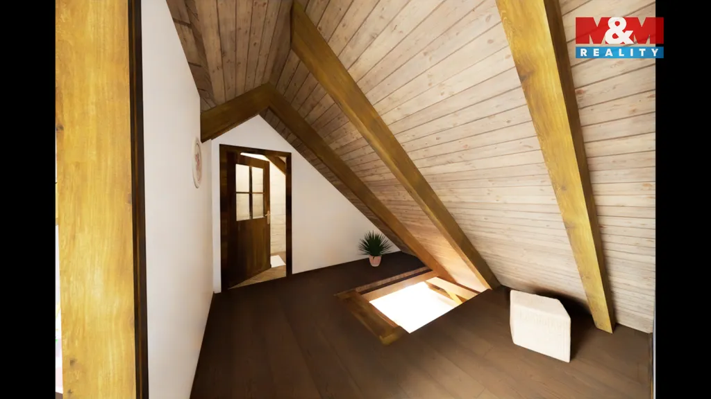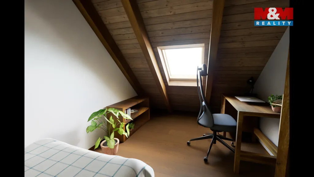 Tento podkrovní mezonetový byt se nachází ve 2.NP rekonstruovaného domu, ve kterém je více bytů venkovského stylu. Ve spodním podlaží bytu je obývací pokoj s kuchyňským koutem, ložnice a koupelna s WC. V patře pak další koupelna s WC a dvě ložnice. Orientace bytu je východ a západ. Dům je zateplen, na střeše jsou nové betonové tašky, PENB typu B. Nízké náklady na energie a vodu. Topení a teplá voda je tepelným čerpadlem, vytápění v podlaze. Voda obecní vodovod, splachování dešťovka. Okna plastová, trojsklo, na zemi dlažba a plovoucí podlaha. V domě je bezdrátový internet a společná anténa. Součástí kupní ceny jsou: podlahy, zárubně, dveře, koupelna vč. obkladů, sanity a skříňky pod umyvadlo a plně vybavená kuchyňská linka. Ve dvoře objektu bude park s lavičkami a herními prvky pro děti, dále wellness. Parkování zajištěno, možnost i dokoupení garáže. Na snímcích použita vizualizace. Byt číslo 9.