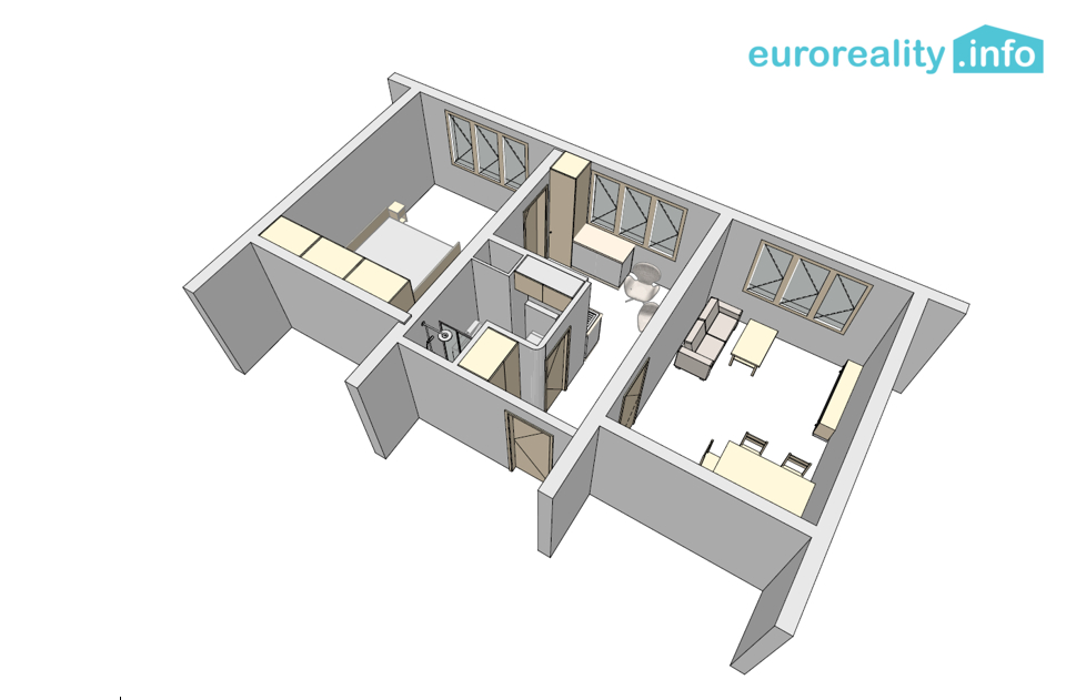 Je orientován na slunečnou západní stranu, což zajišťuje dostatečné množství přirozeného světla po celý den. Plastová okna a to, že se jedná o byt středový přispívá k lepší energetické účinnosti a komfortu bydlení.
