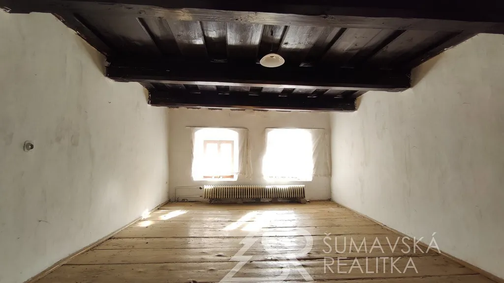 Popis: původní měšťanský dům s historií, o níž svědčí řada prvků jako zázrakem zachovaných v interiérech. Dům nevykazuje statické poruchy, ani nepřiměřenou vlhkost–i když nebyl v posledních letech obýván. Pod střechou z plechových pásů je krov v dobrém stavu. Dřevěná okna i podlahy původní. Mohutné obvodové a nosné zdivo, zaklenutí a niky, černá kuchyně, trámové stropy – to vše vytváří autentické prostředí – jako by dům chtěl vyprávět svůj příběh…