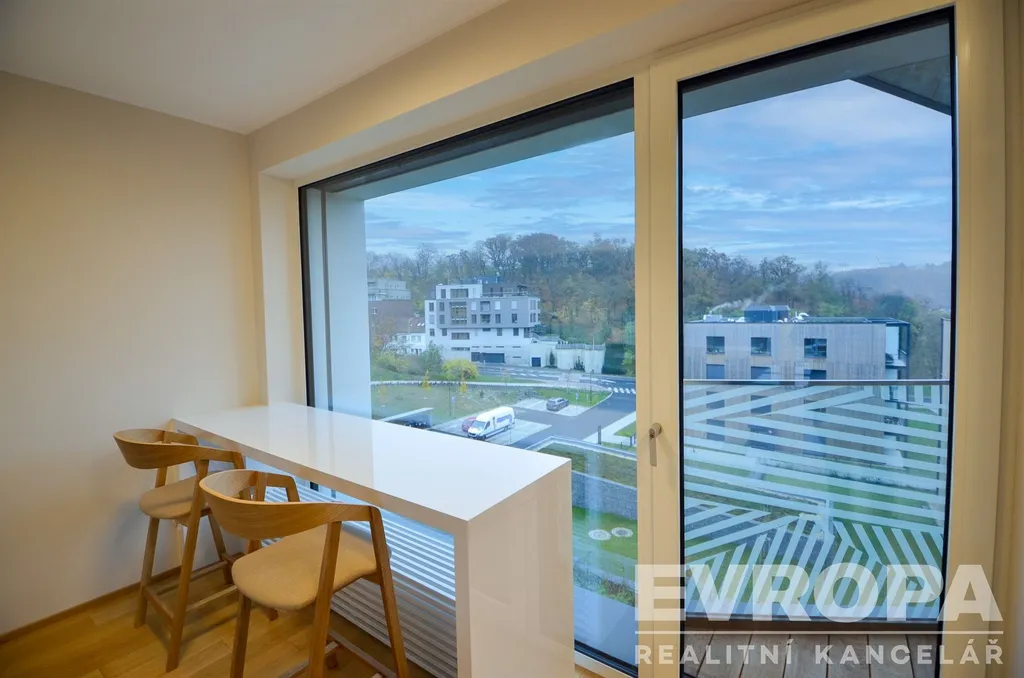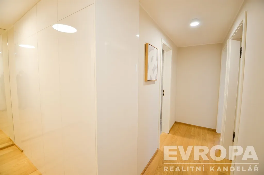 Byt se nachází ve 4.NP šestipatrového domu s výtahem. Provedení bytu je ve vysokém standardu, podlahy z pravého dřeva v obytných místnostech, koupelna s velkoformátovými keramickými obklady. Součástí vybavení koupelny je také žebříkový radiátor a zařizovací předměty značky Hansgrohe a Villeroy & Boch. Byt je dále vybaven rekuperací a předokenními žaluziemi. Vestavená skříň v celé vstupní chodbě a skříň přes celou délku stěny v ložnici nabízí ohromné množství úložného prostoru.