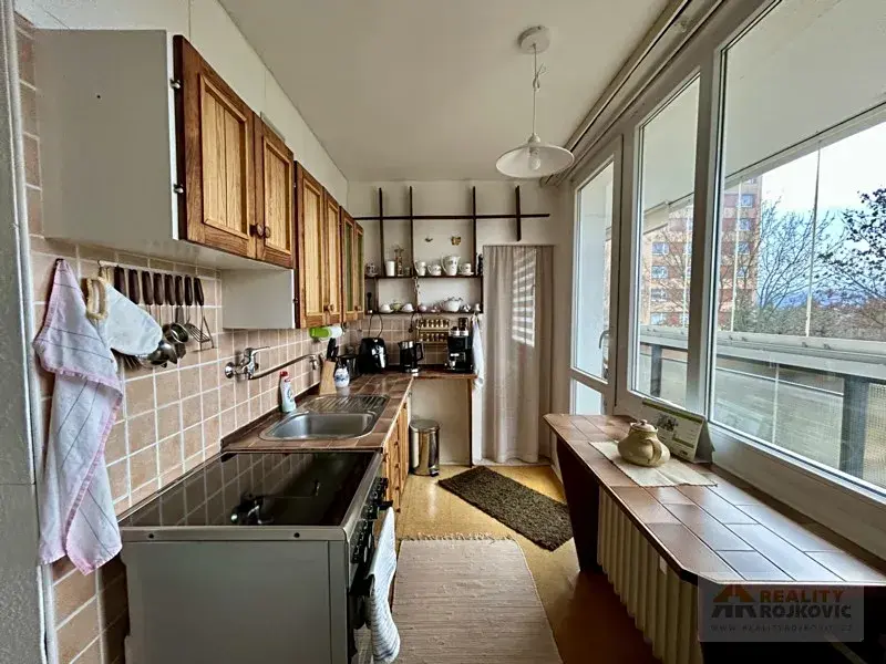 Prodej bytu 3+1 v třetím patře „věžáku na Křinickém sídlišti". Dispozice: vstupní chodba, kuchyně, komora, obývací pokoj a dvě ložnice. Jádro s keramickými obklady, koupelna se sprchovým koutem. Lodžie je orientována na jihozápad. Byt má nová plastová okna a je momentálně bez dalších investic. V domě jsou nové výtahy, stoupačky, střecha, fasáda, rozvod kabelové televize a internetu. Vytápění a ohřev vody zajišťuje tepelné čerpadlo.