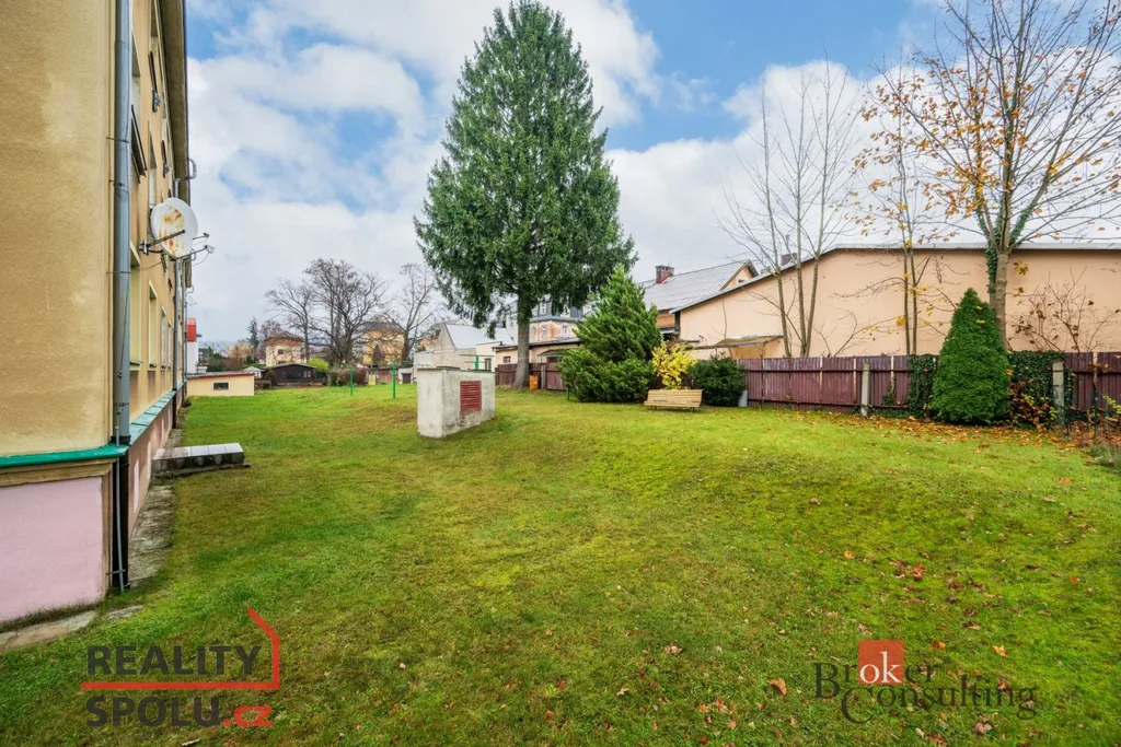 Kolem domu se nachází pozemek, který je ve vlastnictví společenství jednotek, a proto je zde možné plochu využívat jako odpočinkovou zónu.