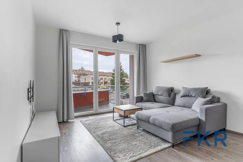 Hlavní obytnou část 26,4 m² tvoří obývací pokoj s přímým vstupem na balkon a kuchyňský kout s plně vybavenou kuchyňskou linkou a vestavěnými spotřebiči. Ložnice 17 m² je vybavena vestavenou skříní poskytující dostatek úložného prostoru.