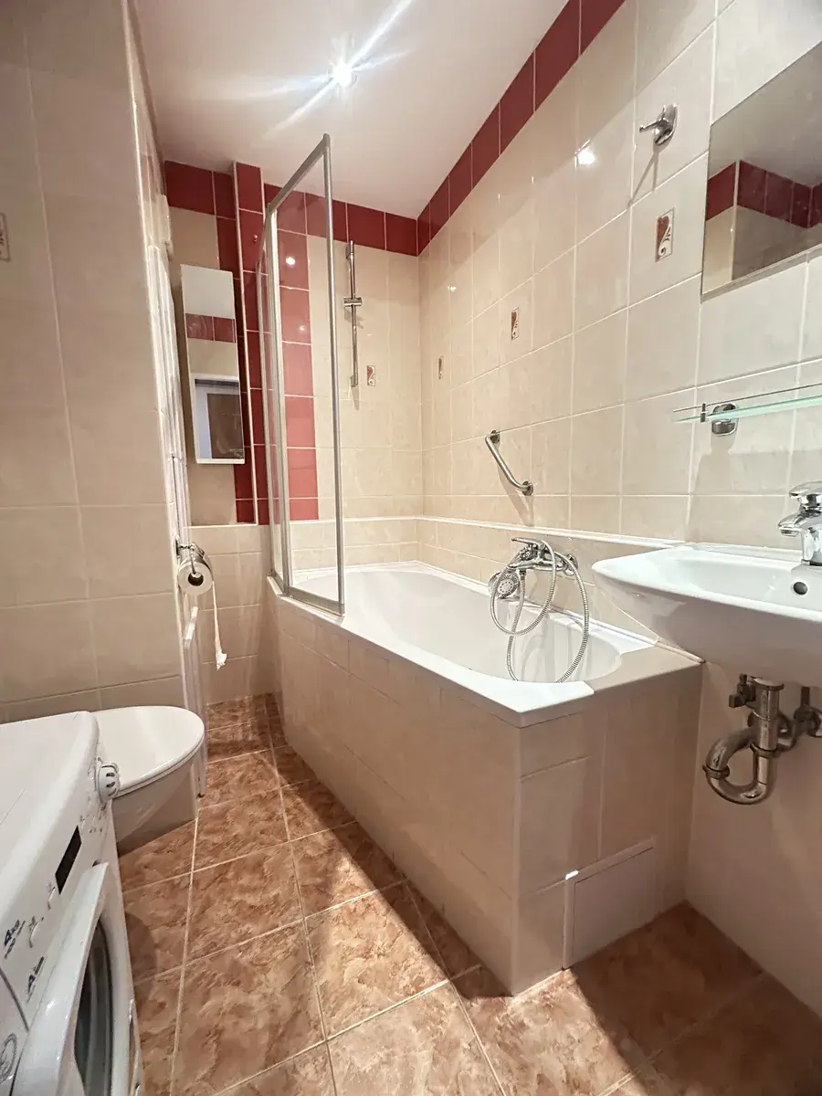 Uvnitř vás čeká prostorný obývací pokoj s vestavěnou skříní, který snadno poslouží i jako ložnice. Navazuje na moderní kuchyňskou linku vybavenou spotřebiči včetně lednice, doplněnou o barový pult, kde si můžete vychutnat ranní kávu nebo večerní sklenku vína. Exkluzivní koupelna laděná do stylových tónů nabízí vanu se sprchovou zástěnou a k dispozici je také pračka. Parkování je pohodlně hned před domem. V mezipatře k dispozici další úložný prostor cca 3m2 se zamykací skříní.