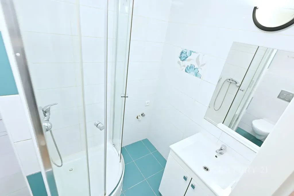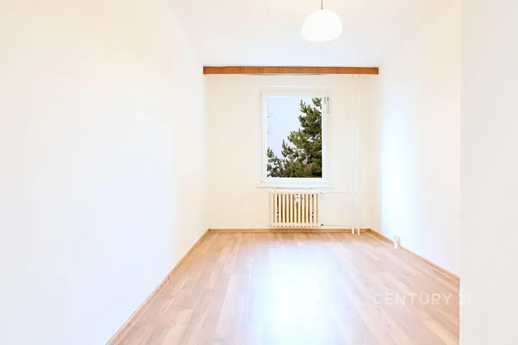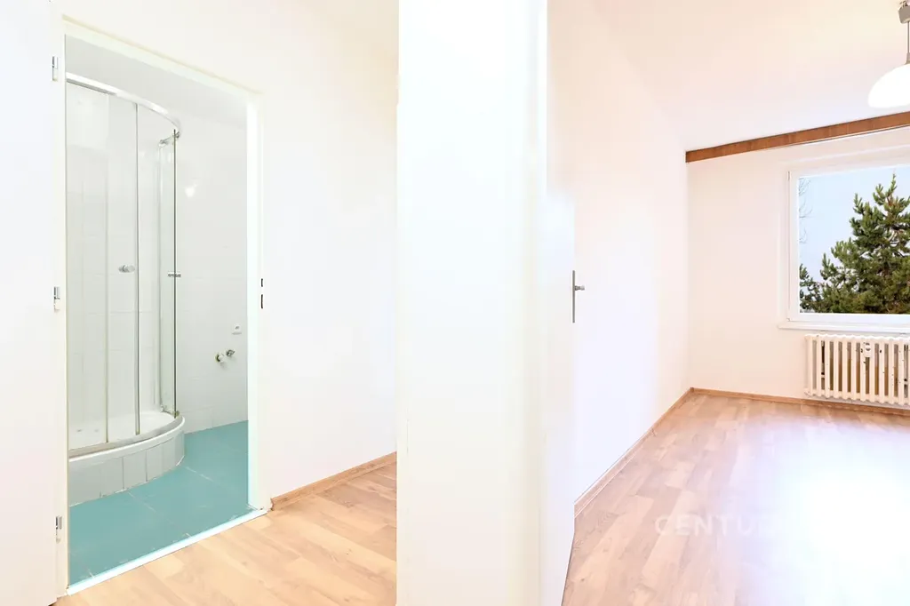 Byt se nachází v pátém nadzemním podlaží panelového domu. Disponuje vstupní chodbou, odkud se vchází do koupelny se sprchovým koutem, skříňkou, WC a umyvadlem. Z chodby se dostaneme do samostatného pokoje. Vedle této místnosti se nachází obývací pokoj. Odtud je vstup na lodžii. Poslední místností je kuchyně. Je tu kuchyňská linka rozdělená do dvou částí. Součástí je nový elektrický sporák.