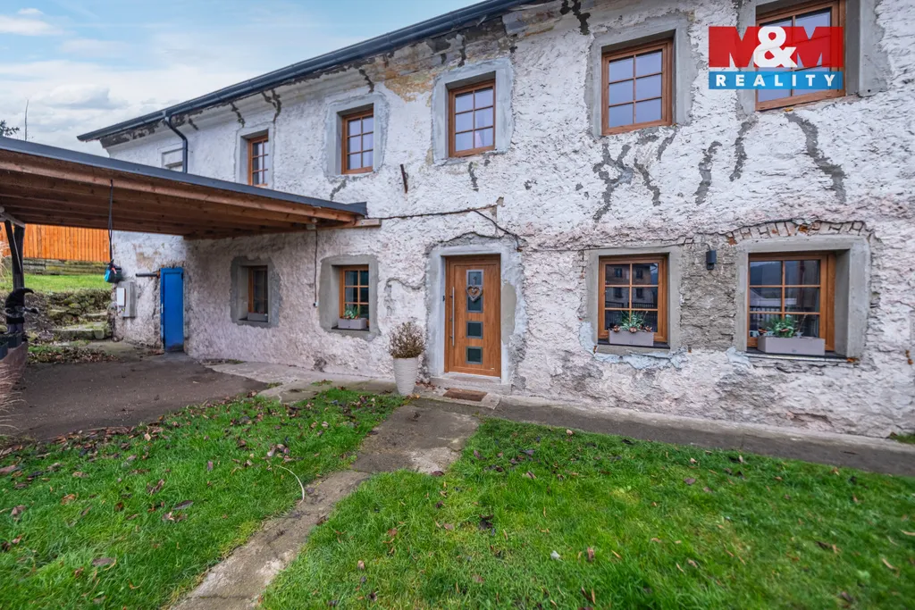 Nabízíme k prodeji prostorný dvoupodlažní rodinný dům o dispozici 5+1 v klidné části obce, po značné rekonstrukci, s oplocenou zahradou a pergolou s posezením. Užitná plocha domu činí 197 m² a je rozložena do dvou pater. V přízemí se nachází předsíň, velká koupelna propojená s WC, obývací pokoj se vstupem do kuchyně a také obrovská technická místnost, členitá a využívaná i místo sklepa. Schodištěm se dostaneme do patra, kde najdeme rozlehlou halu a z ní vstup do šatny, odtud do ložnice, dále prostorný dětský pokoj, pracovnu a vstup do původní garáže, odtud pak vstup na půdu. Tento prostor je přístupný i ze zahrady z druhé strany domu. V celém obytném přízemí je dlažba s podlahovým topením, v patře jsou dřevěné a plovoucí podlahy. Dům má plastová okna, je vytápěn tepelným čerpadlem a je napojen na vodu z řádu, střecha je také nová. Na pozemku je vlastní studna, která se využívá pro splachování WC. Přímo před domem je autobusová zastávka. Přijďte nasát atmosféru tohoto domu na prohlídku.