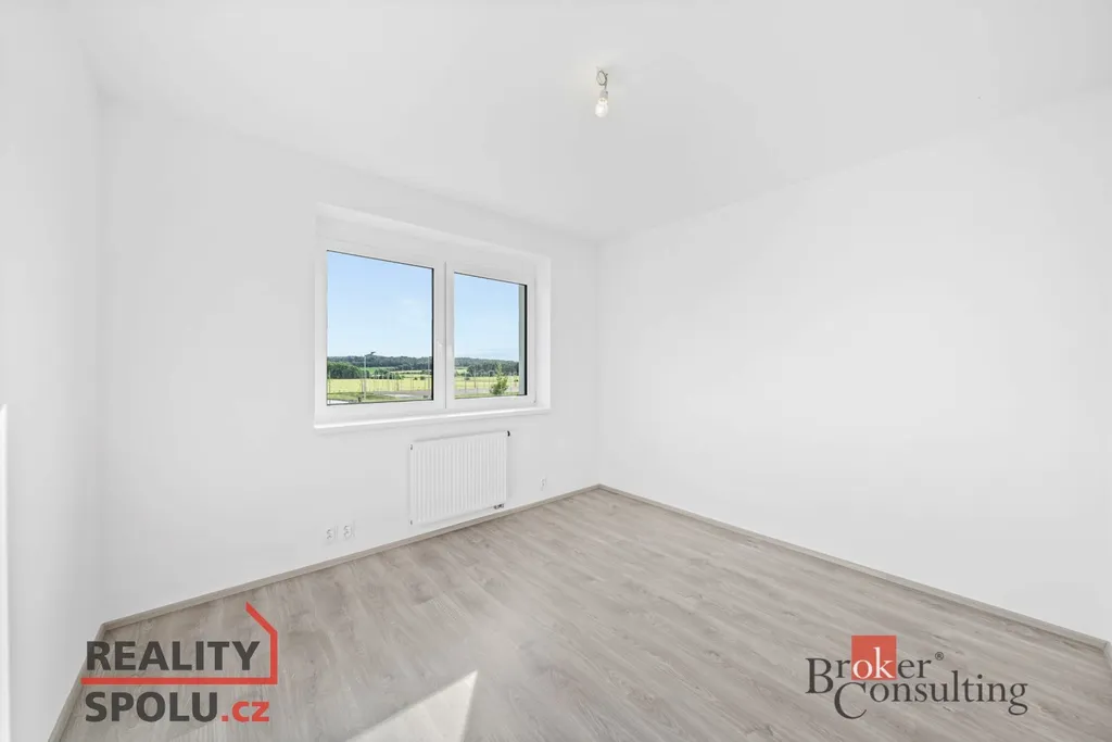 Byt se nachází ve druhém patře v novostavbě s moderním designem. Dispozice bytu zahrnuje prostornou moderní kuchyňskou linku se spotřebiči spojenou s obývacím pokojem, ložnici, dětský pokoj, koupelnu se sprchovým koutem a toaletou.
