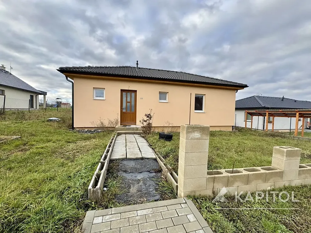 Na exteriéru je potřeba dokončit několik prvků (oplocení, vstupní chodník, terasa/pergola), což umožní novému majiteli dotvořit si okolí domu dle vlastních preferencí.