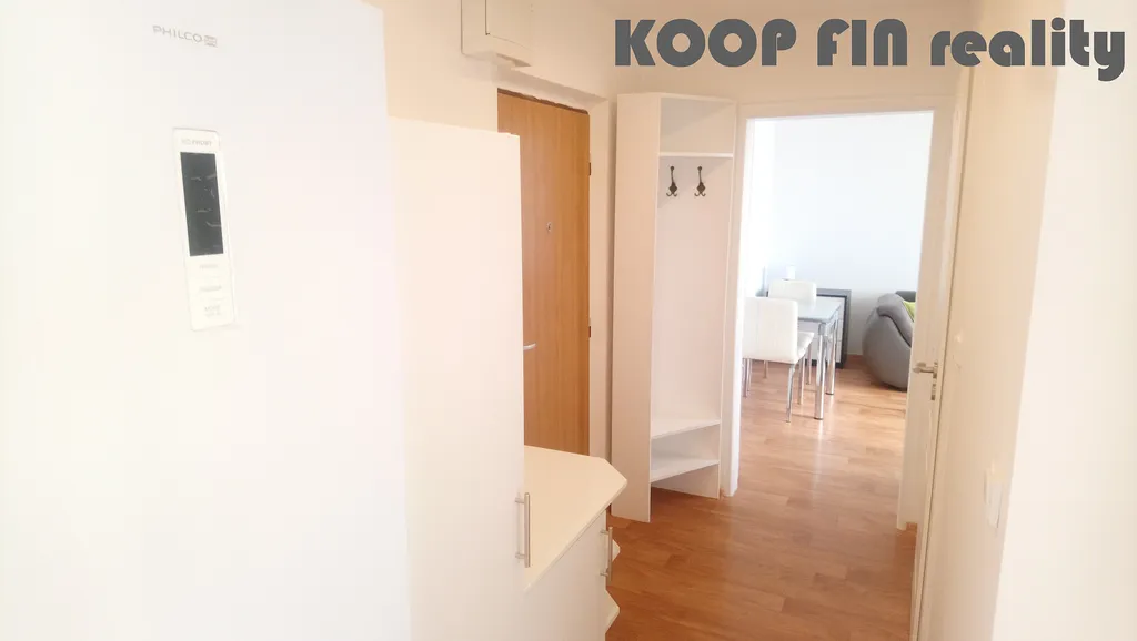 Uvnitř bytu nalezneme centrální chodbu s úložným zázemím, prostorné neprůchozí pokoje, samostatnou kuchyň vybavenou kuchyňskou linkou s vestavnými spotřebiči, mikrovlnkou a volně stojící lednicí, koupelnu s vanou a automatickou pračkou.