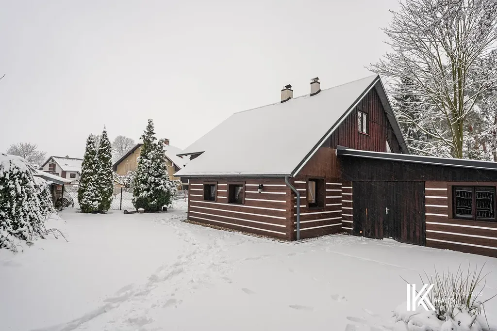 Na pozemku o celkové rozloze 739 m² stojí tato neobyčejná chalupa, která prošla v roce 2023 rozsáhlou rekonstrukcí. Zvenku působí jako klasická roubenka, ale za krásnou fasádou z techniky zkamenělého dřeva se skrývá moderní interiér. Trámy byly zachovány a ponechány přiznané, aby dům neztratil svůj charakter, původní okna dávají stavbě přirozenou atmosféru a nová plechová střecha zajišťuje dlouhou životnost. Dům je cihlový, pevný a připravený na dlouhá léta používání.