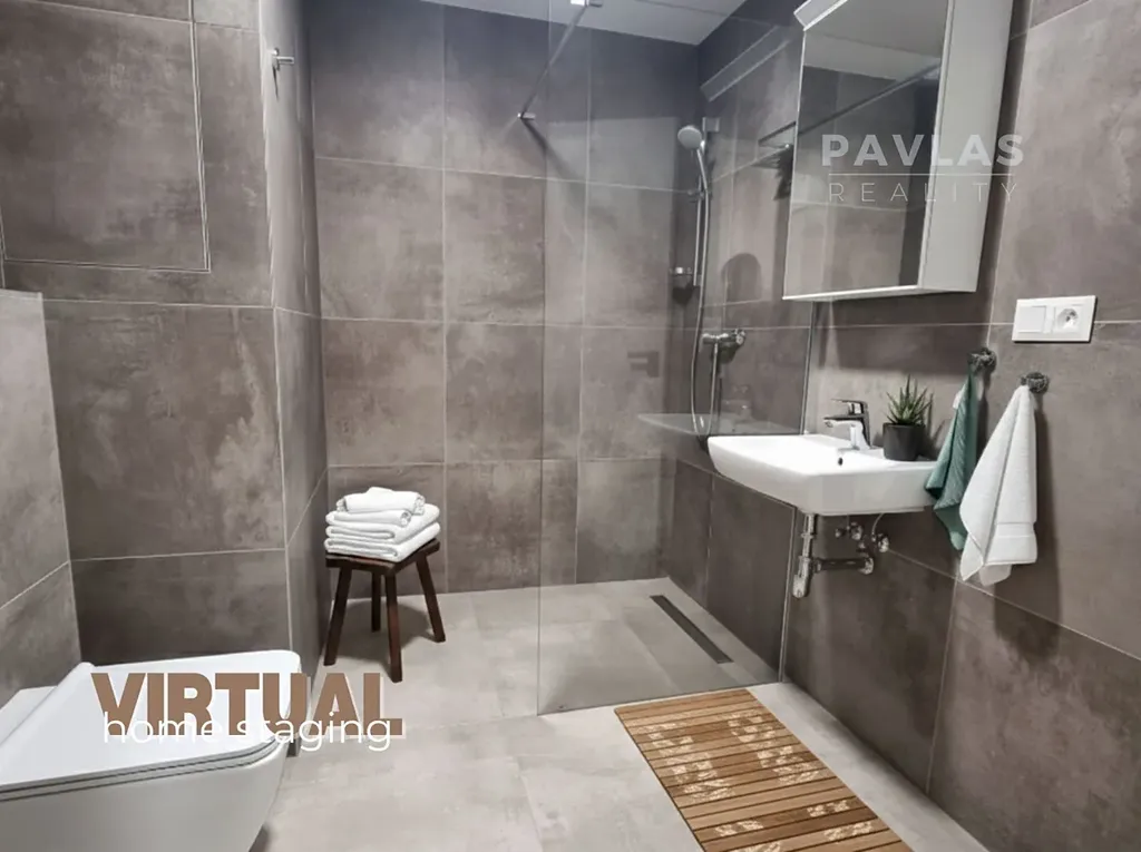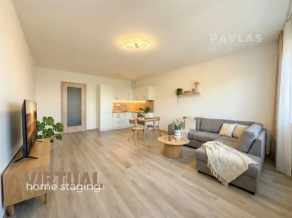 Byt je navržen tak, aby poskytoval maximální komfort. Dispozice zahrnuje vstupní chodbu s prostorem pro šatní skříň, světlý a prostorný obývací pokoj s moderním kuchyňským koutem vybaveným elektrospotřebiči, myčkou, vestavnou lednicí a mrazákem. Koupelnu se sprchovým koutem, umyvadlem a WC. Celý byt je vybaven podlahovým topením. Všechna okna jsou trojskla s předokenními žaluziemi. Součástí pronájmu je také skladovací kóje na patře bytu.
