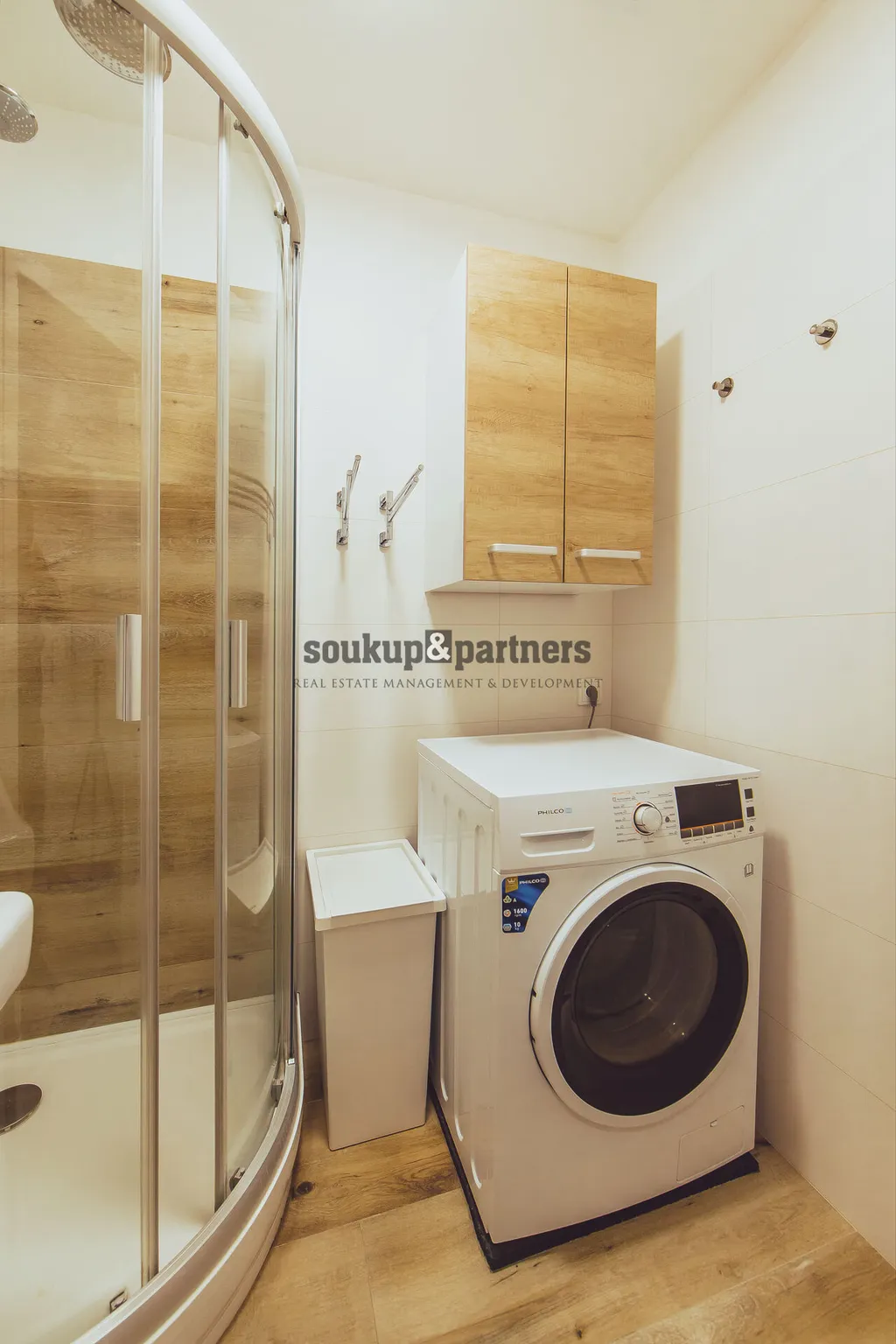 Kuchyň je vybavena kvalitními spotřebiči značky Philco.Indukční varná deska, digestoř, myčka na nádobí, lednice s mrazákem (double No Frost). V koupelně je sprchový kout a pračka značky Philco. Součástí prodeje je kompletní vybavení bytu včetně vestavěného nábytku na míru (kuchyně + předsíň), postelí, skříní a dalších kusů nábytku.