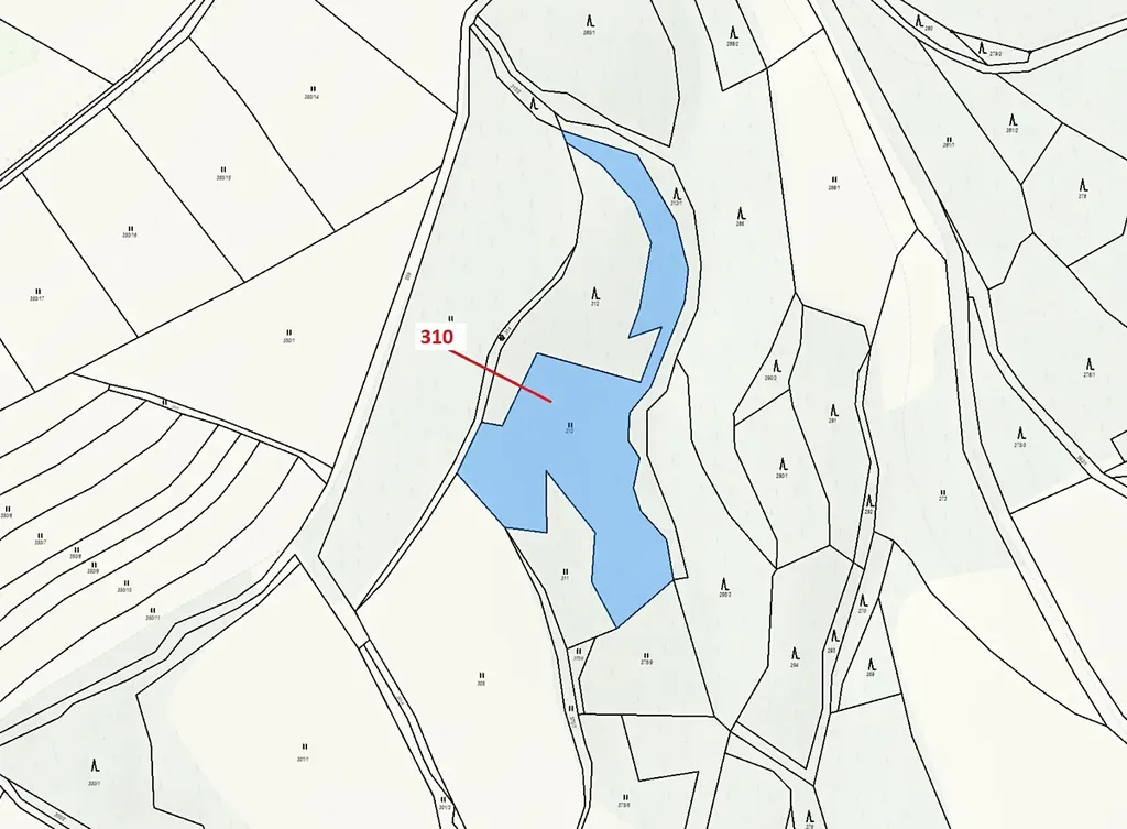 Trvalý travní porost o výměře 4766 m2, parcelní číslo 310, podíl 1/1, katastrální území Bezděkov nad Třebůvkou, obec Bouzov, obec s rozšířenou působností Litovel, okres Olomouc, Olomoucký kraj.