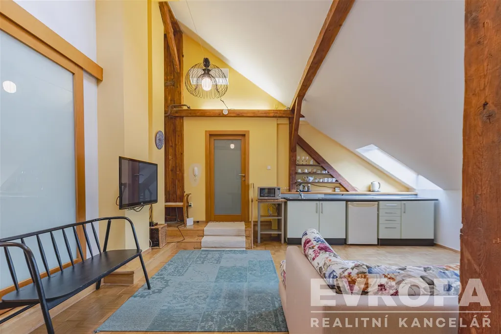 V exkluzivním zastoupení majitele nabízím k prodeji prostorný loftový byt o dispozici 2+kk a podlahové ploše 63 m², umístěný v posledním 6. nadzemním podlaží bytového domu s výtahem. Historický dům z roku 1899 je průběžně udržovaný ve výborném stavu.