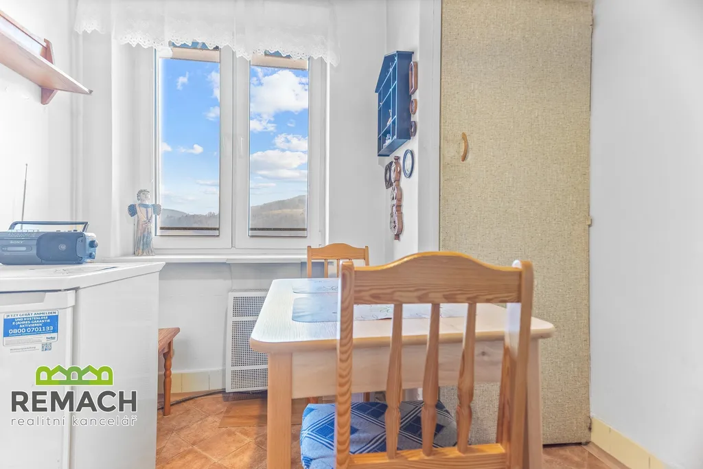Bytová jednotka se nachází hned ve 4 .patře s krásným výhledem do krajiny a jeho celková plocha je 34 m², k bytu dále náleží prostorný balkon 4 m² a sklepní kóje.