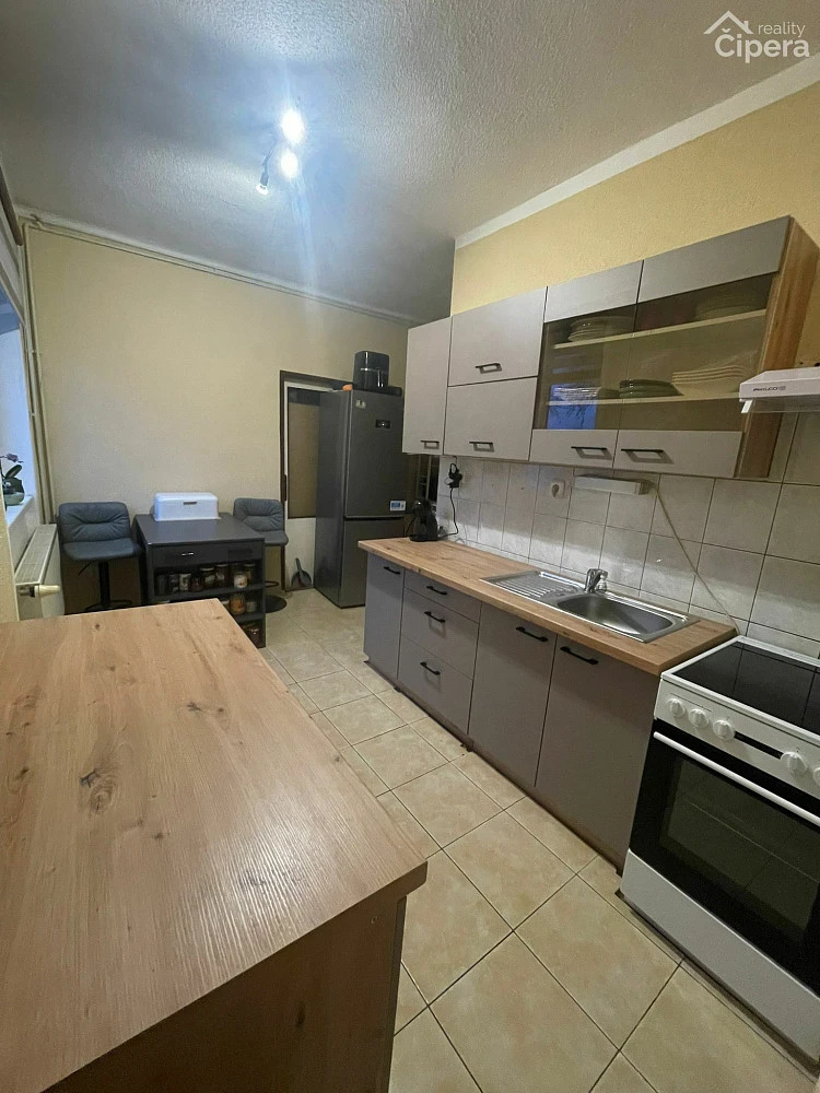 Byt disponuje prostorným obývacím pokojem, samostatnou ložnicí, místností s kuchyňskou linkou a prostorem na jídelní stůl, koupelnou, samostatným WC a chodbou. Kuchyňská linka disponuje troubu s varnou desku a digestoří. V koupelně je k dispozici vana a umyvadlo. Součástí pronájmu jsou dvě sklepní kóje o celkové ploše cca 5m².