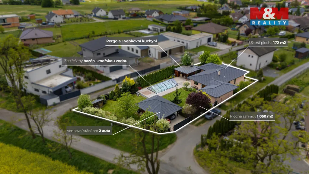 Moderní bungalov 5+KK v blízkosti přírody a jen kousek od Ostravy v obci Jistebník. Nabízíme k prodeji samostatně stojící cihlový bungalov o užitné ploše 172 m² na pozemku 1050 m² v klidné, lukrativní lokalitě obce Jistebník. Tento dům je ideální volbou pro náročné rodinné bydlení. Dispozice: prostorný obývací pokoj s novou kuchyní, 4 komfortní pokoje, koupelna s vanou, sprchovým koutem a WC, samostatné WC, technická místnost, vstup na venkovní terasu. Exteriér: nová fasáda kombinovaná se žulovými prvky, luxusní venkovní kuchyně z pískovce se sporákem, grilem, udírnou a pecí na pizzu, venkovní stání pro dvě auta, zastřešený bazén s mořskou vodou, elektrické venkovní žaluzie na domě. Technické vybavení: tepelné čerpadlo, krb, klimatizace, bazén 8×4 m. Energetická třída: B – velmi úsporná. Tento dům poskytuje pohodlné a moderní bydlení v prestižní lokalitě, ideální pro rodiny. Pro více informací nebo domluvení prohlídky nás prosím kontaktujte.