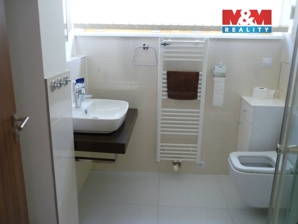 Nabízíme k pronájmu atraktivní, úsporný rodinný dům, 5+kk, 200 m2, zahrada 670 m2, se 2 koupelnami, nedaleko dvou přírodních rezervací. Příjemná rezidenční lokalita s kompletní občanskou vybaveností. V těsné blízkosti se nachází jezdecký klub a dětské hřiště, dále cyklostezky. Krátký dojezd autem k centru Modřan a 30 min do centra Prahy. Přízemí domu je tvořeno obývacím pokojem s kuchyní, vybavenou veškerými spotřebiči, lednicí a barovou chladničkou, dále jídelním prostorem, šatnou, komůrkou, koupelnou se sprchovým koutem a WC, vstupem na zahradu a garáží. Patro domu se skládá ze 3 ložnic a samostatné pracovny, koupelny s vanou, samostatného WC a schodišťové haly. V domě je klimatizace. Samostatnost domu s rozlehlou oplocenou zahradou zaručuje maximální soukromí. V zahradě je místo na posezení a grilování, velké vyžití pro děti - k dispozici houpačky a trampolína. Dům je elektronicky zabezpečen. Měsíční nájemné 58 000 Kč, dále provize RK, energie si platí nájemník.