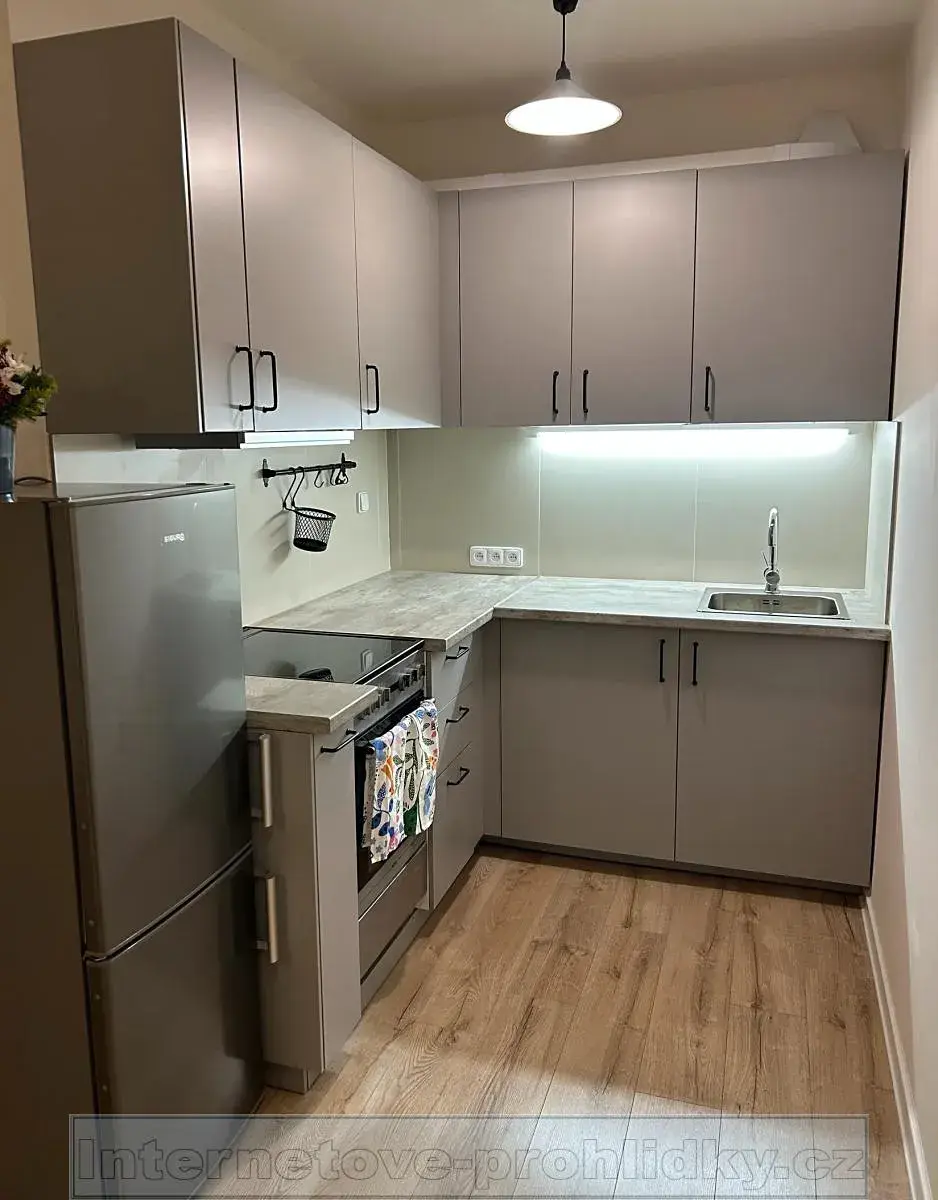 Byt se nachází v 1. patře velmi udržovaného domu s výtahem.Velmi světlý byt s balkónem. Kuchyňská linka ve tvaru L s dostatkem úložného prostoru. Spotřebiče - lednice s mrazákem, elektrická trouba, pračka. V předsíni velká skříň a úložný prostor. Byt je vhodný pro jednotlivce či pár. Byt je k nastěhování ihned. Nájem 19900 plus 8000 veškeré energie, 25000 kauce, provize 25000kč