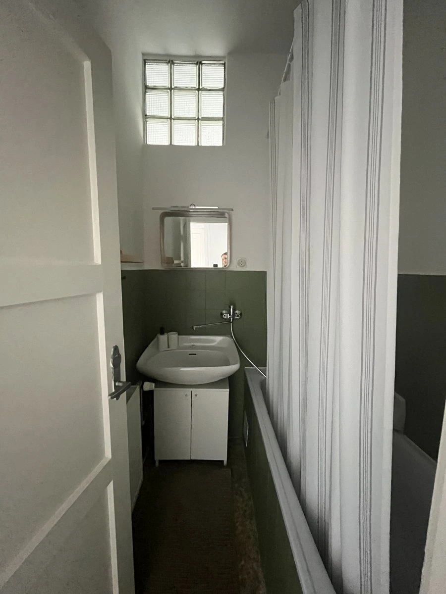 Při vstupu do bytu uvidíte prostornou chodbu s úložným prostorem a vstupy do jednotlivých místností. Dispozice nabízí velkou koupelnu s umyvadlem, vanou. Toaleta se nachází zvlášť.