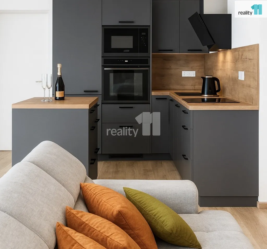 Byt je kompletně vybaven kvalitním nábytkem na míru, s výjimkou jednoho pokoje (dětského/pracovny), který bude možné dovybavit dle přání, případně si jej můžete zařídit podle vlastních potřeb.