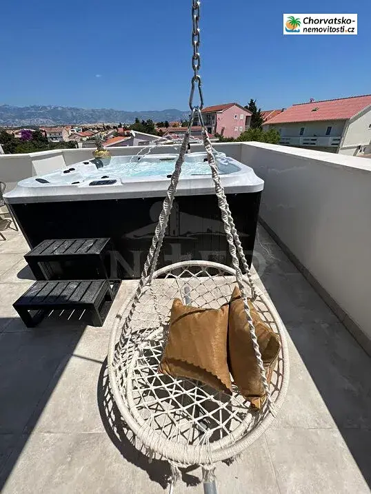 Čtyřpokojový apartmán (S2) nebo řadový dům se zahradou je na prodej na výjimečném místě v Novalji, nedaleko pláží Vrtić a Lokunje.