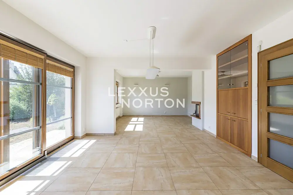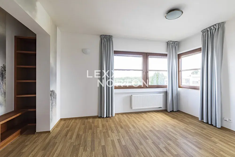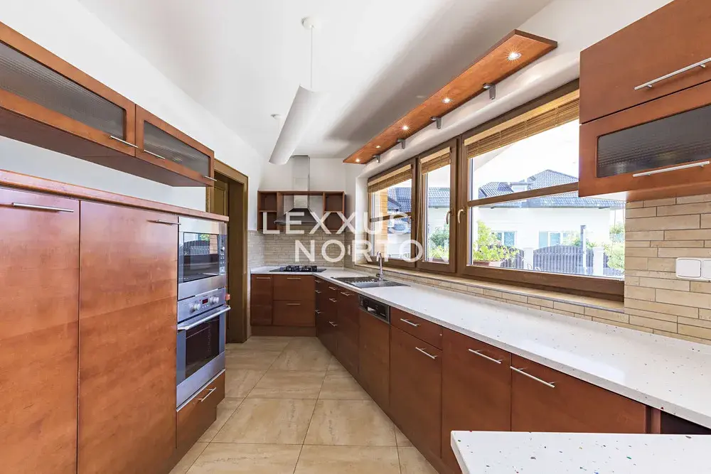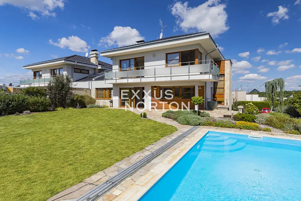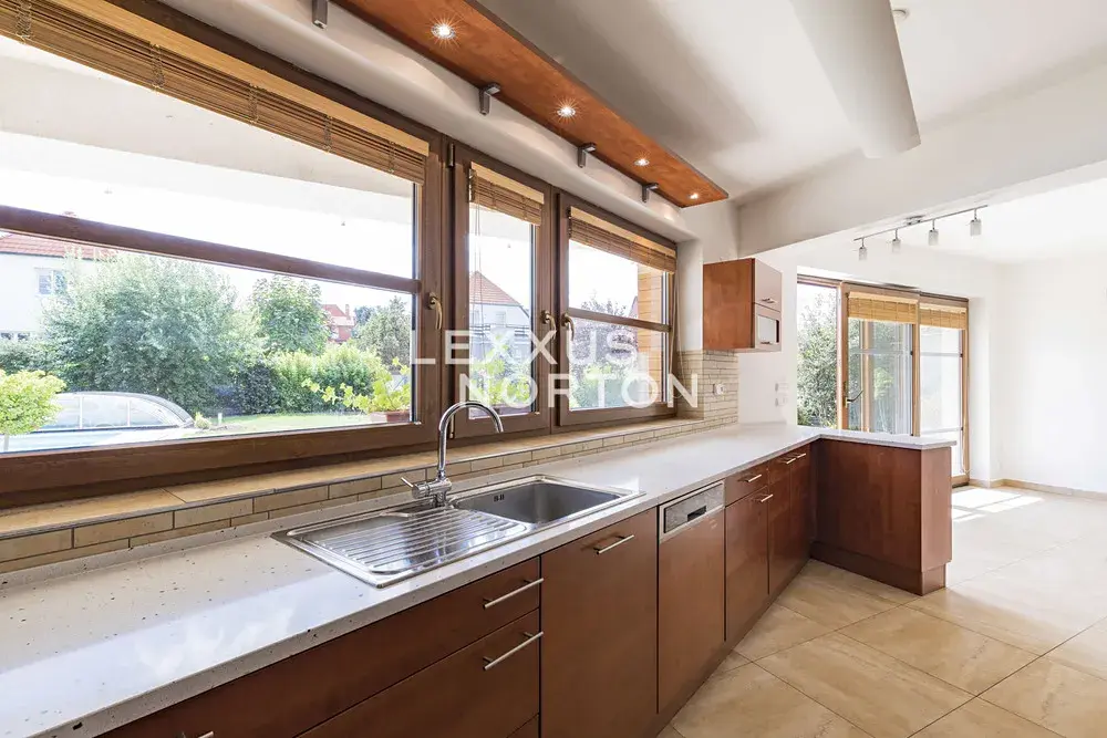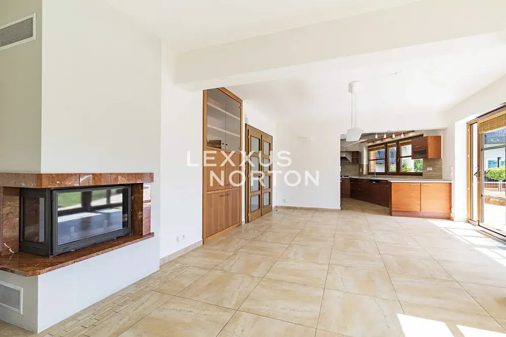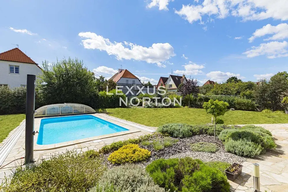 Tento světlý nezařízený dům k pronájmu dispozičně nabízí vstupní halu, obývací pokoj s krbem a samostatným kuchyňským koutem, 4 ložnice, 2 koupelny, samostatnou toaletu, pracovnu, šatnu a komoru. K domu náleží balkon, terasa a prostorná zahrada s bazénem. K domu náleží garážové stání, fotovoltaika a tepelné čerpadlo, které vám ušetří měsíční poplatky.