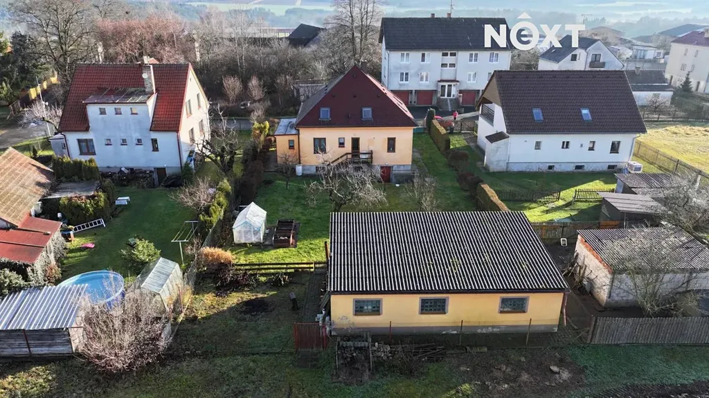 K domu náleží zahrada o velikosti 619 m², která poskytuje příjemný prostor pro odpočinek, rodinné aktivity nebo zahradničení. Na pozemku se nachází také zahradní domek s posezením, který lze využít jako garáž, dílnu nebo místo pro hobby.