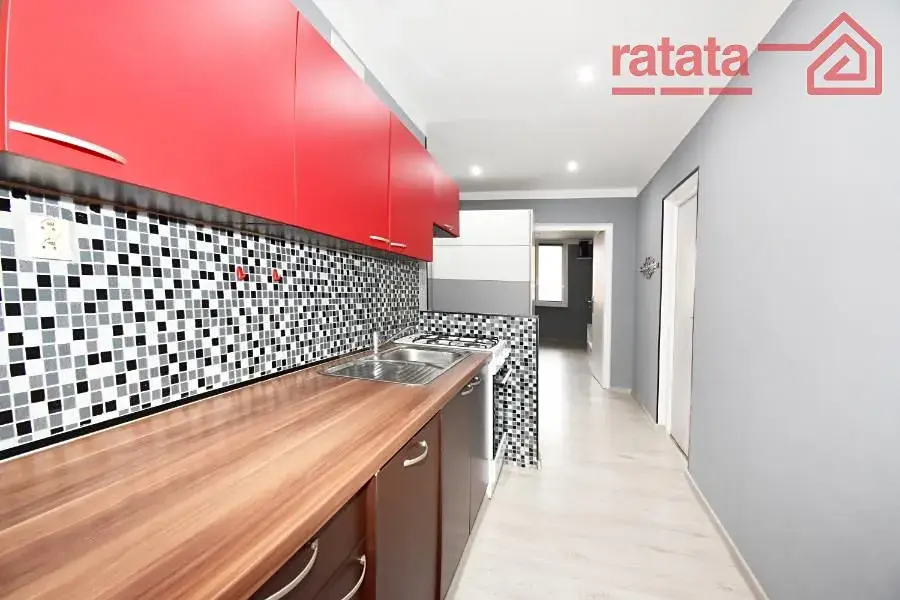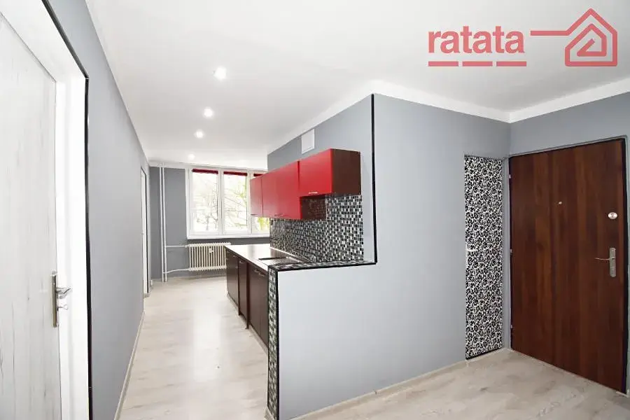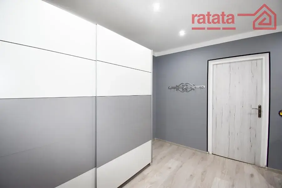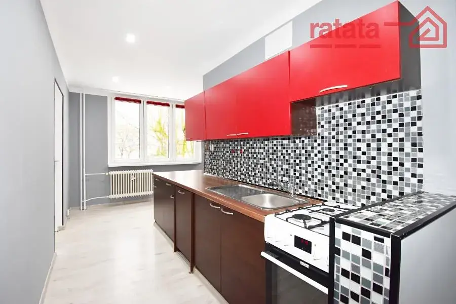 Je zde velká kuchyňská linka, plynový sporák, myčka, na chodbě šatní skříň, sprchový kout a WC. Na podlahách je položena plovoucí podlaha. Byt je volný k nastěhování od 1.1.2026.