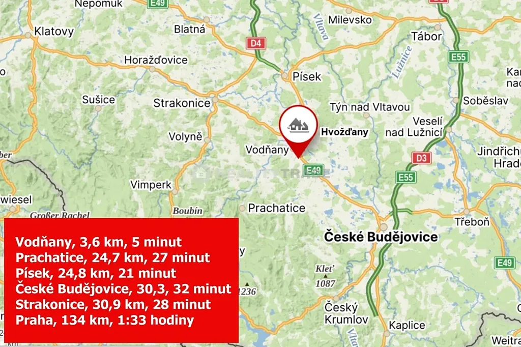 Hvožďany u Vodňan je malá obec s 86-ti obyvateli, část města Vodňany, v okrese Strakonice v Jihočeském kraji. Nachází se 3 kilometry jihovýchodně od Vodňan. Obec má strategickou polohu s velmi dobrou a rychlou dostupností do Českých Budějovic, Písku, Strakonic, Prachatic a Vodňan. V těsné blízkosti domu je autobusová zastávka. Doporučuji prohlídku! Tel.: 602 271 334.