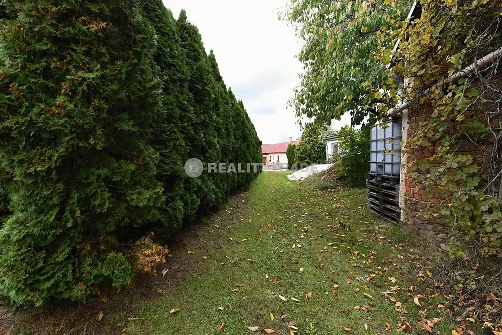Součástí prodeje je pozemek st. č. 64 výměra 123 m2, zastavěná plocha a nádvoří, jejíž součástí je rozestavěná, nedokončená budova (rodinný dům) bez s čísla popisného, pozemek č. 54/4 výměra 369 m2, zahrada a pozemek č. 795/2 výměra 101 m2, orná půda. Vše je označeno červenou čarou. Dále k domu bude zajištěn přístup formou věcného břemene nebo odprodejem poloviny přístupové cesty. Tyto pozemky jsou vyznačeny modrou čarou.
