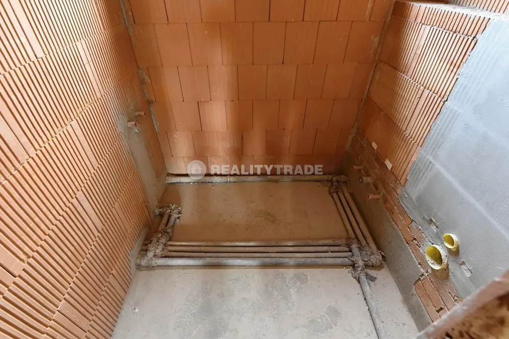 Základy jsou izolované, betonové. Objekt je cihlové konstrukce (Pichler Klimabloc Plan broušené). Stropy jsou tvořené keramickými stropními vložkami a keramicko-betonovými stropní nosníky vyztuženými svařovanou prostorovou výztuží (Miako). Střecha sedlová se záklopem, krytina pálená taška (Tondach bobrovka s glazurou), hromosvod, klempířské prvky v mědi. Plastová okna (Vekra trojsklo). Příprava na podlahové vytápění. Elektřina v mědi. Odpady v plastu, rozvod vody v plastu. Komín dvouděrový, vyvložkovaný (Rohr-Kamin). Rozvod pro centrální vysavač. Příprava na tepelné čerpadlo (vyvedené technologie). Dům je připravený na napojení na tyto sítě: elektřina 220/400 V, obecní kanalizace a vodovod. Půdorys 1PP, 1NP a 2NP je k dispozici na tomto webu v záložce "SOUBORY".
