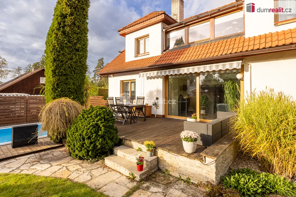 Dům procházel od roku 2012 kompletní rekonstrukcí, jejímž výsledkem je moderní, velmi útulný a nápaditý interiér, který poskytuje bohatý prostor pro rodinu. Zajímavé prvky, jako prosklená podlaha v patře, nebo dominantní hala, na kterou navazuje venkovní dřevěná terasa s bazénem, podtrhují úžasnou atmosféru této nemovitosti.