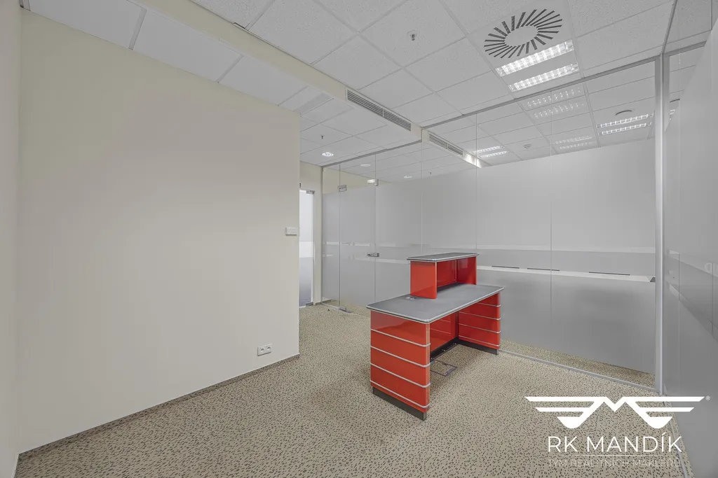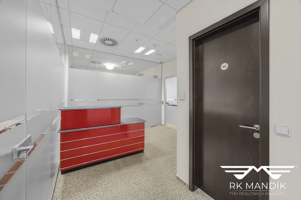 Prostory se nacházejí v 5. patře zrekonstruované administrativní budovy s výtahem a nepřetržitým provozem recepce s přístupem 24/7.