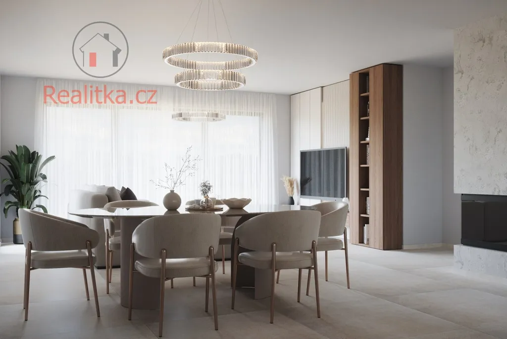 Dům disponuje pěti oddělenými místnostmi, které poskytují dostatek soukromí pro každého člena rodiny. Srdcem domu je velkorysý obývací pokoj s krbem, který vytváří útulnou atmosféru pro společné chvíle. Z prvního patra se dostanete na prostornou terasu – ideální místo pro ranní kávu, rodinné grilování nebo relaxaci. Dům obklopuje dostatečně velká zahrada.