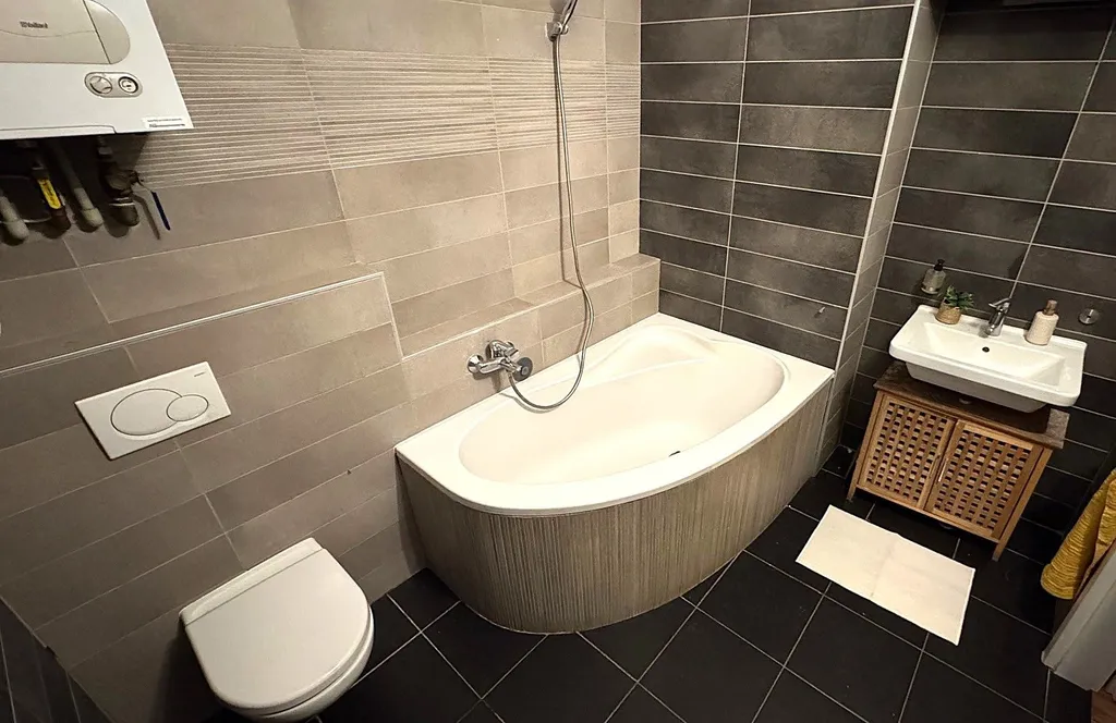 Vytápění i ohřev vody zajišťuje vlastní plynový kotel, který přispívá k nízkým provozním nákladům. K bytu náleží sklepní kóje v suterénu domu a také dvě vestavěné skříně umístěné na chodbě před bytem. Parkování je možné před domem.