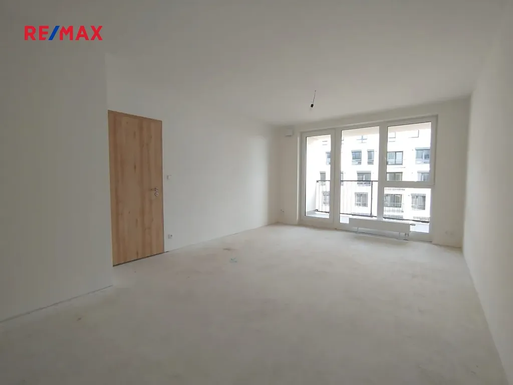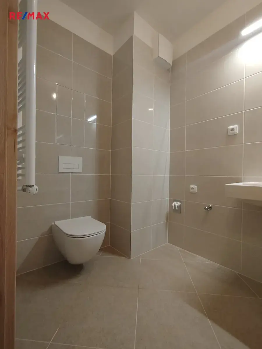 Byt se nachází ve 3. nadzemním podlaží moderní novostavby s východní orientací, která zajišťuje dostatek denního světla. Dominantou bytu je prostorný obývací pokoj s kuchyňským koutem, vybaveným kvalitní kuchyňskou linkou na míru (Oresi) s vestavěnými spotřebiči a volně stojící lednicí.
