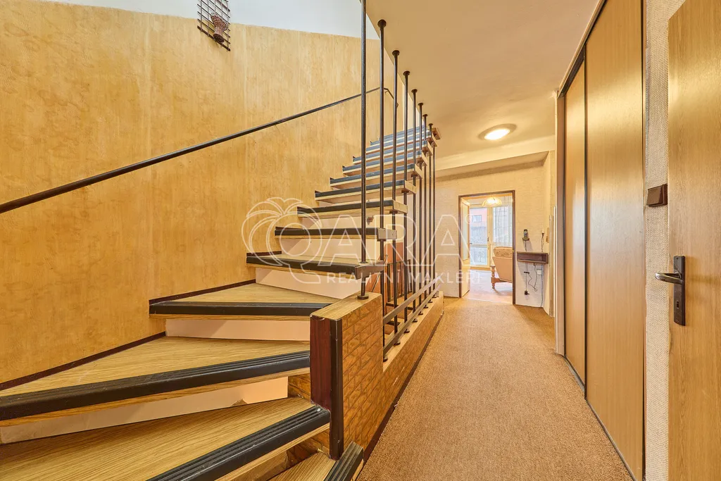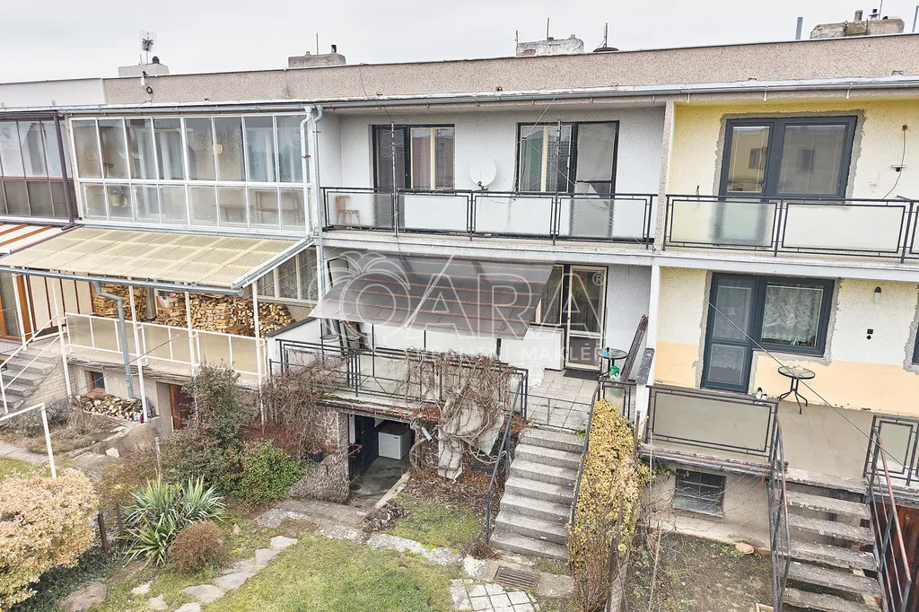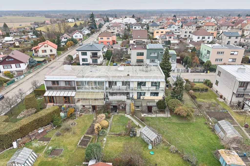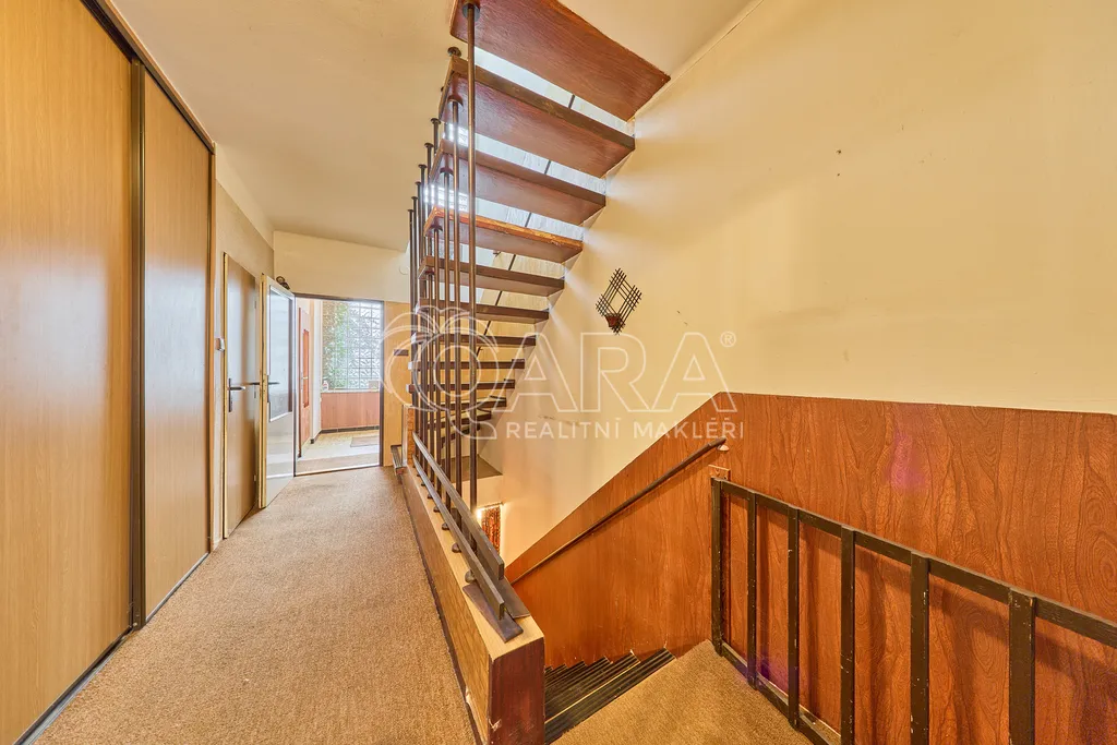 Ve druhém patře se nachází tři prostorné pokoje, z nichž dva jsou propojené balkonem, což poskytuje příjemné výhledy a možnost relaxace na čerstvém vzduchu. Obývací pokoj je propojen s terasou o výměře 21 m², ze které se dostanete přímo na zahradu. Tato zahrada je vynikajícím místem pro rodinné oslavy či odpočinek a nabízí prostor pro pěstování rostlin nebo zahradničení.