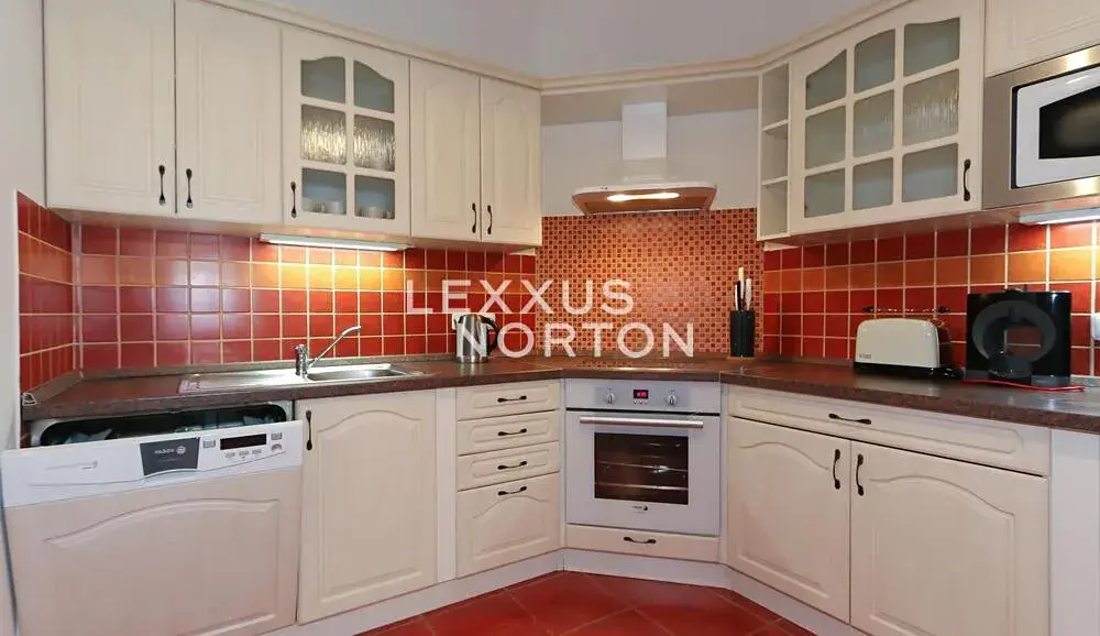 Byt je zařízený a součástí jsou kuchyňské spotřebiče, televize, pračka, sušička, sedací souprava, krb, konferenční a televizní stolek, skříně, komody a postel.