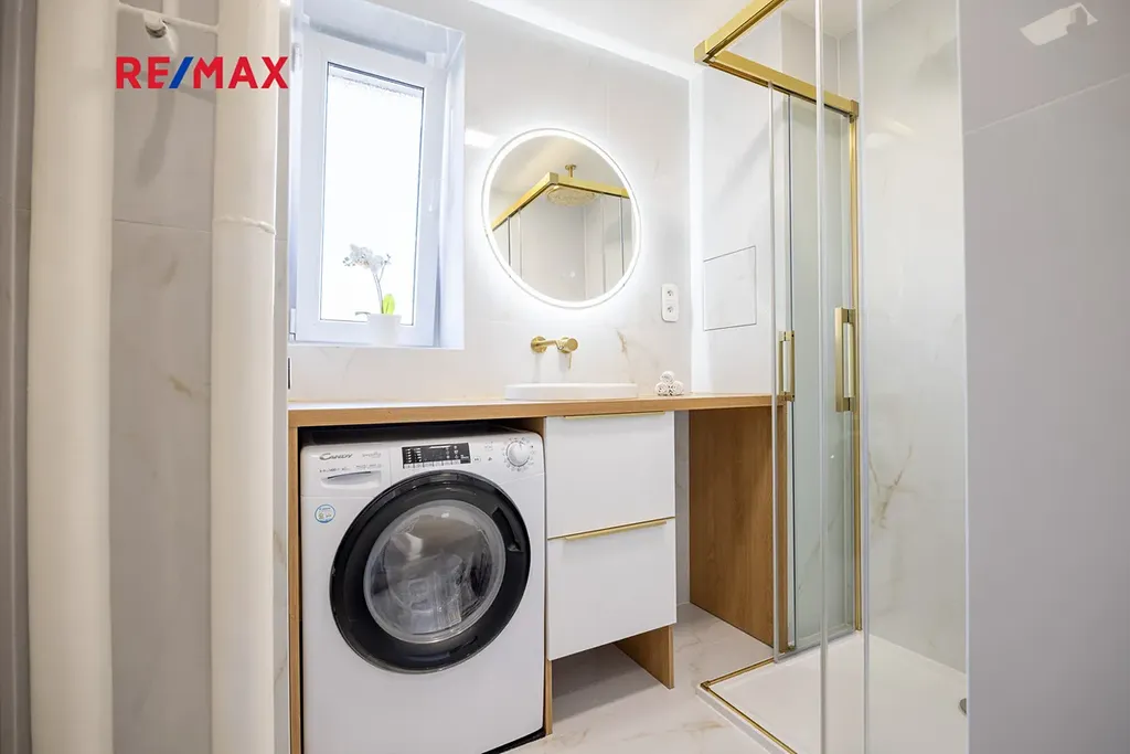 - Koupelna nabízí luxusní sprchový kout, novou automatickou pračku a velmi kvalitní provedení.