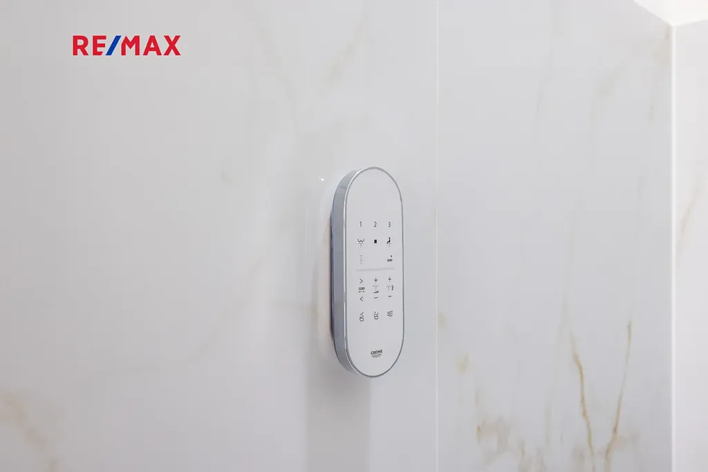 - Samostatná toaleta je výjimečná svým provedením – osazen je luxusní automatický záchod Grohe, který je nadstandardním doplňkem tohoto krásného bytu.