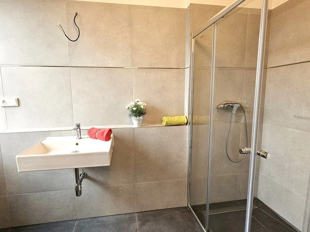 • Moderní koupelna se sprchovým koutem, WC, umyvadlem a přípojkou na pračku: 7,14 m²