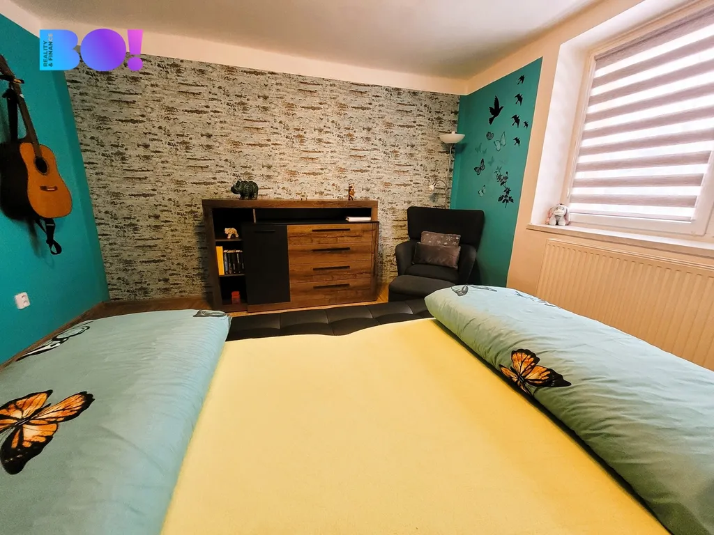 Ve druhém nadzemním podlaží se nacházejí tři samostatné pokoje, které jsou vhodné jako ložnice rodičů a dětské pokoje, a dále menší místnost využívaná jako šatna. Velkou výhodou je možnost vybudování další koupelny s WC přímo v tomto podlaží, což umožňuje komfortní bydlení i pro větší rodinu.