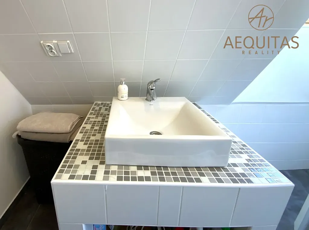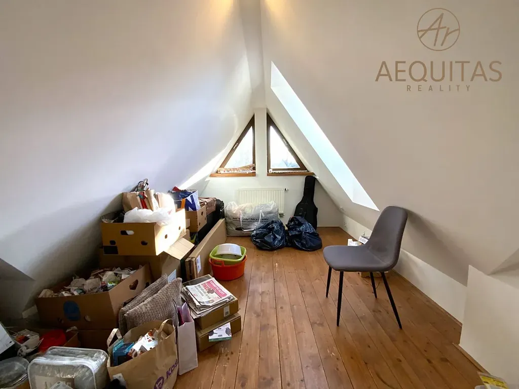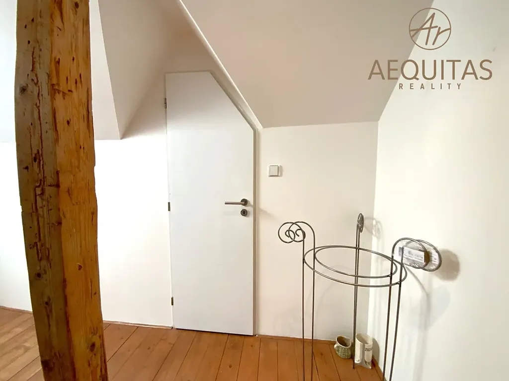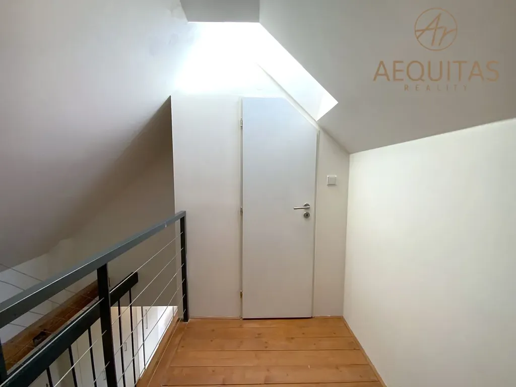 Ve druhém podlaží bytu, v atypickém podkroví, je umístěna ložnice, menší pokojík využitelný i jako velká šatna, nestandardní podkrovní druhá koupelna s rohovou vanou, toaletou a umyvadlem.