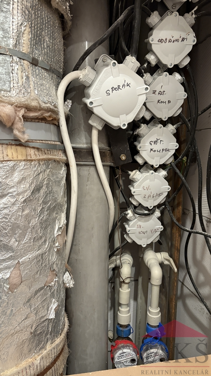 TUV: vlastní el. boiler v suterénu přímo pod bytem.
