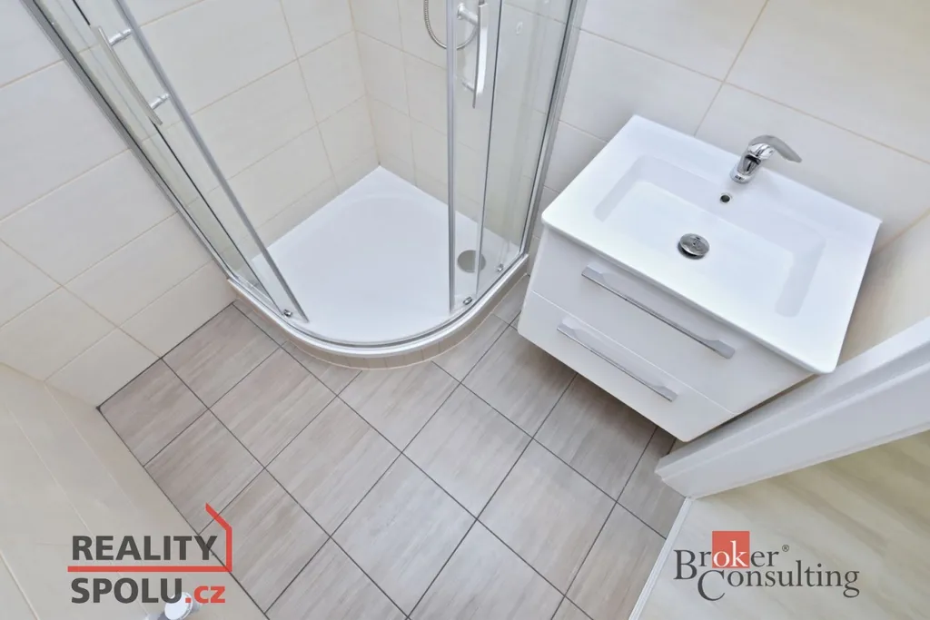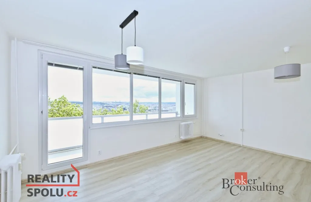 Dispozice bytu: prostorný a slunný obývací pokoj s jižní orientací a výhledem na Prahu, lodžie 6m2, kuchyňská linka s vestavěnými spotřebiči (myčka, sklokeramická el. deska, el. horkovzdušná trouba, lednice s mrazákem), předsíň s komorou, samostatná toaleta, koupelna se sprchovým koutem, umyvadlem a prostorem na pračkou, 2 x ložnice s okny orientovanými na sever. K bytu náleží sklep na patře. Okna jsou v bytě plastová, podlahy jsou vinylové a dlažby. PENB bude dodáno.