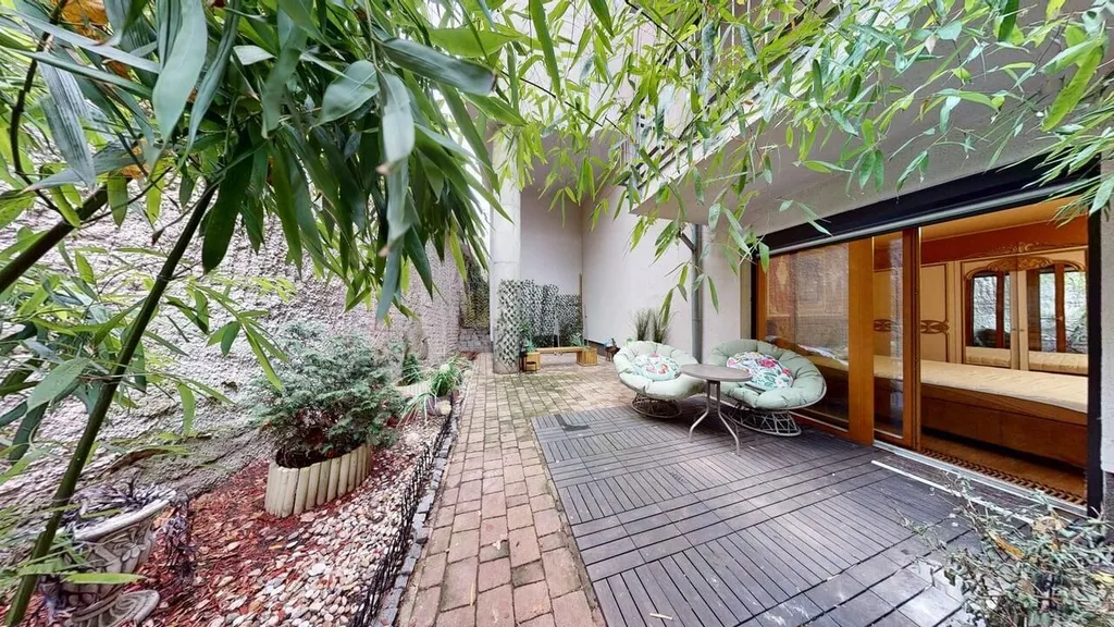 Velkým lákadlem je velká soukromá terasa 28,79 m² s přímým vstupem z ložnice. Terasa je vybavena pohodlným měkkým koutkem, mini-zahrádkou s celoročními rostlinami a dekorativním osvětlením. Jedná se o opravdu kouzelné místo pro klidné večery – číst knihu obklopeni zelení, pořádat romantické večeře pod hvězdami nebo jen odpočívat v naprostém soukromí a poslouchat šum listí a vzdálené zvuky lázeňského města. V létě se terasa mění v plnohodnotný venkovní obývací pokoj, kde je příjemné začínat den šálkem kávy.